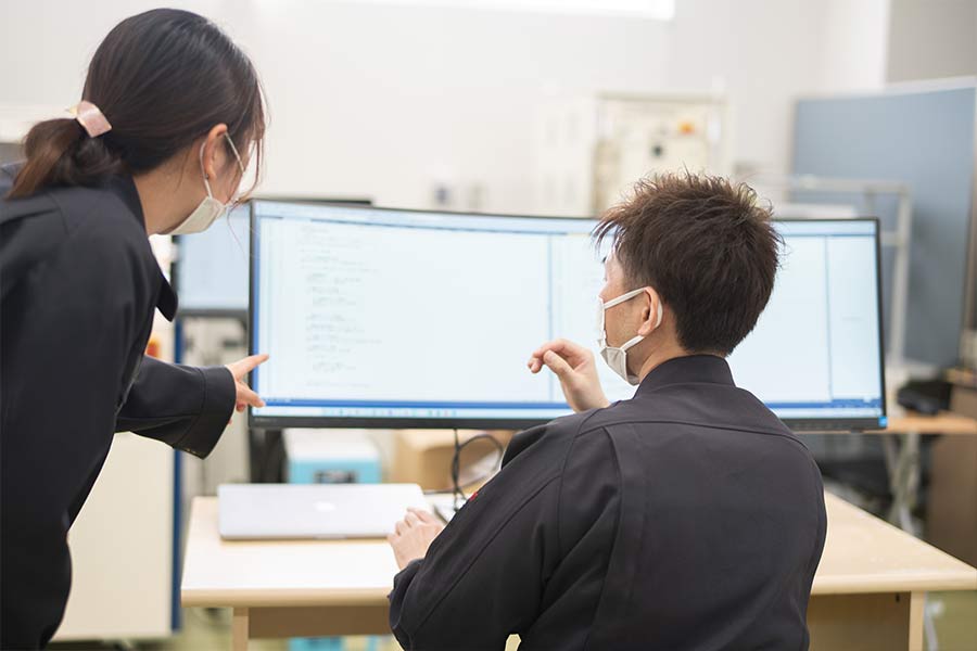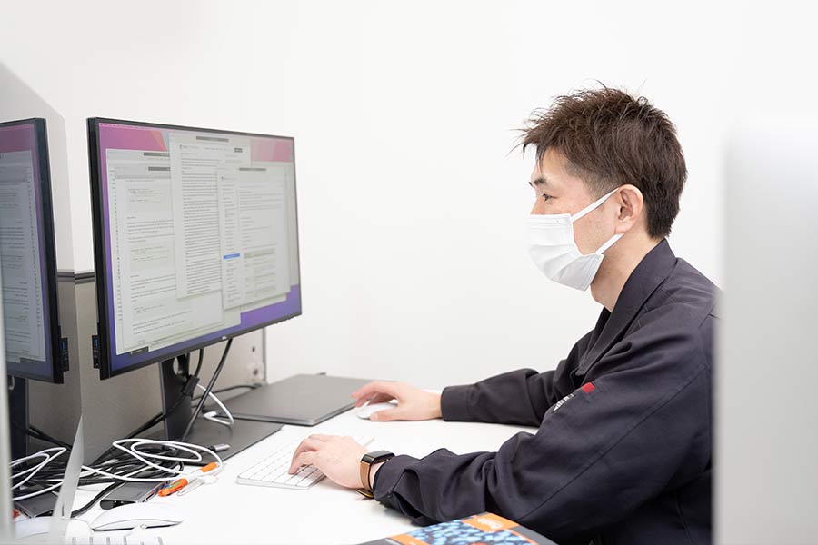 当社では現在、業務効率を向上させるために社内IT化を推進しています。基幹システムの全面刷新を計画し、開発プロジェクトを開始しました。 新しい基幹システムにより、今まで部門毎に管理していた案件情報を一元化し、余計な情報の入力や共有ミスなどを減らし、生産性を向上させることを目標としています。基幹システム開発以外にも当社オリジナル装置の制御ソフトウェアの開発も行っています。自身の開発経験を活かし課題解決に役立てることはもちろん、一から開発に携わることで新たな知識を得ることができるのでスキルアップにも繋がります。